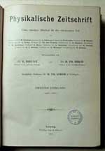 RIECKE, E. & H. Th. SIMON → Physikalische Zeitschrift 1899 & 1900 → 350 CHF Herausgegeben von E. Riecke und H. Th. Simon an der Universität in Göttingen. Unter ständiger Mitarbeit für den referierenden Teil von A. Abegg, L. Ambronn, Boruttau, M. Brendel, A. Coehn, Th. des Coudres, W. Kaufmann, E. Meyer, L. Rhumbler, W. Wiechert, E. Zermelo. Leipzig, Hirzel, Erste Band von 1. October 1899 bis 29 September 1900. 52 Heft. 620 Seiten. Zweiter Band von 6. Oktober 1900 bis 28 September 1901. 758 Seiten. Beide in zehr gut Zustand. Siehe aufnahme.